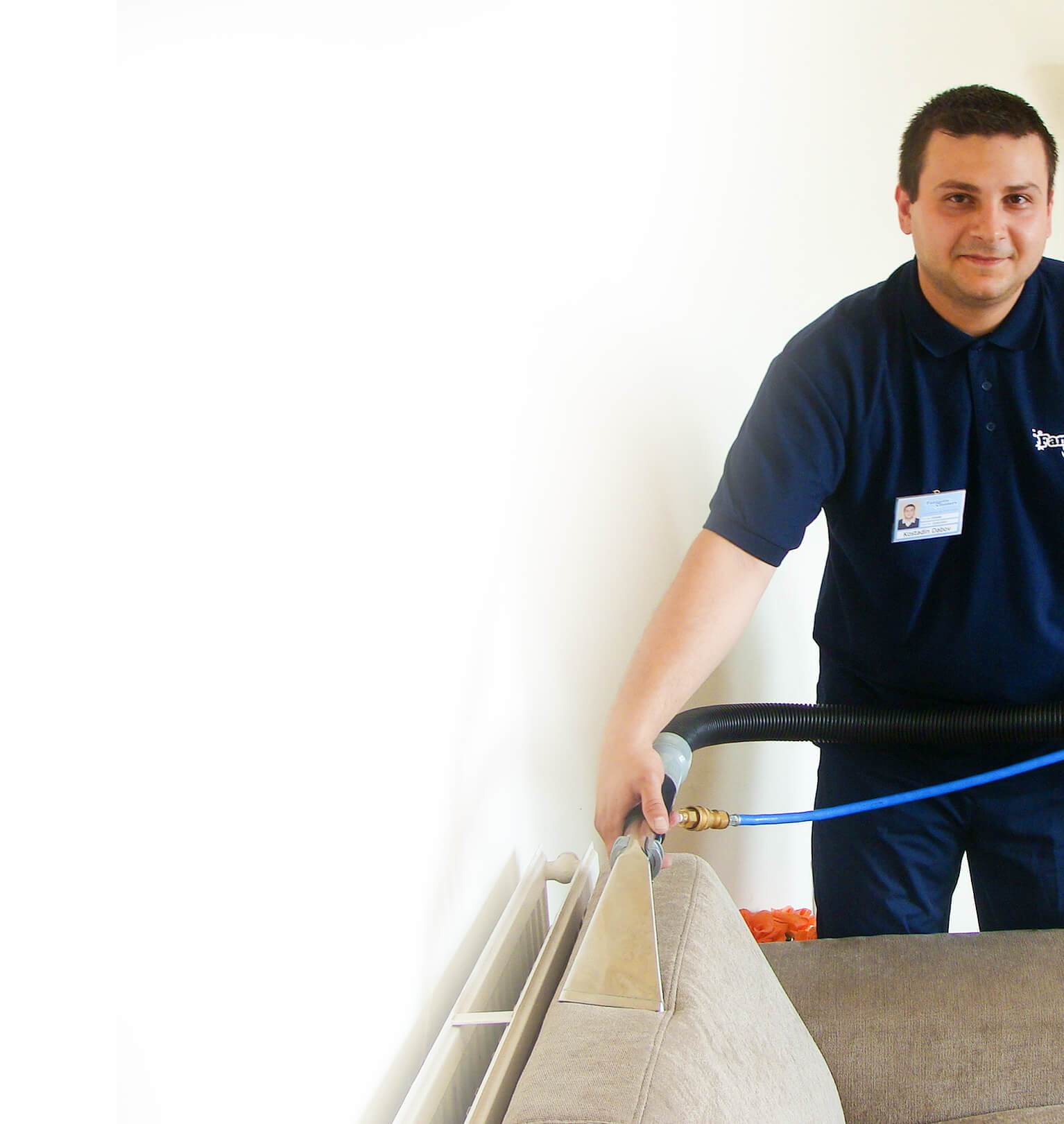 We send fully-equipped upholstery cleaners, so all you have to do is greet them and let them do their job.